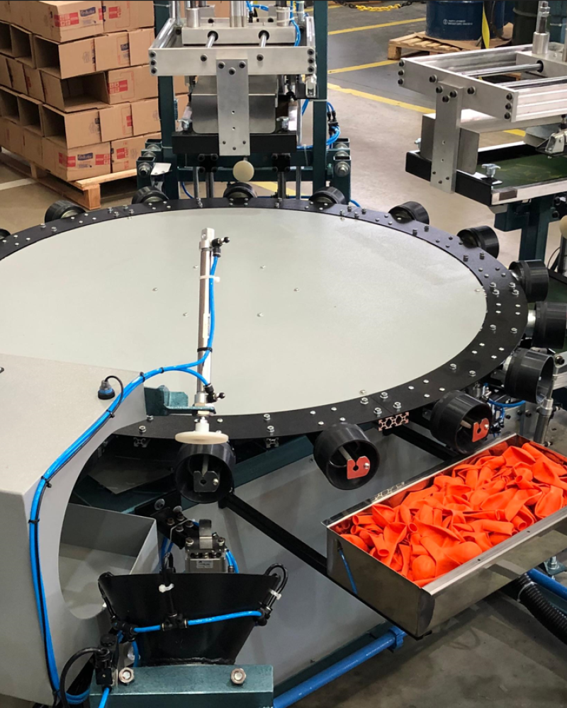 Máquina manual para impressão de balões gigantes com controle e estabilidade.